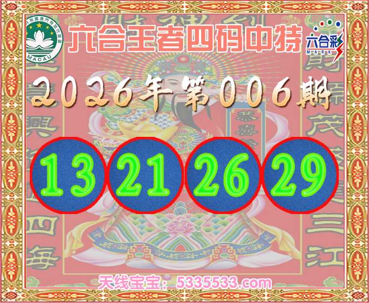006期:《六合王者》 🥽四码中特🥽【13.21.26.29】开:13
