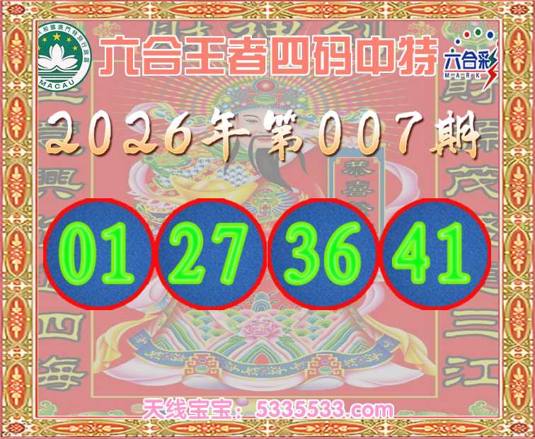 007期:《六合王者》 🥽四码中特🥽【01.27.36.41】开:41