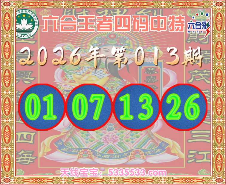013期:《六合王者》 🥽四码中特🥽【01.07.13.26】开:01