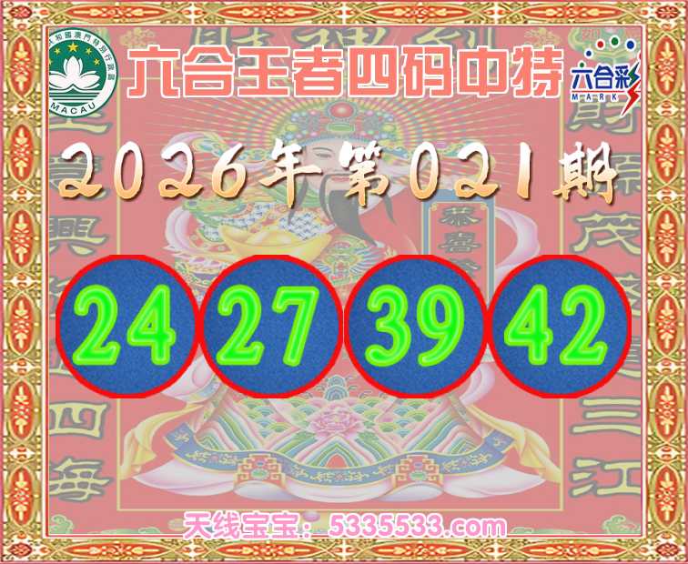 021期:《六合王者》 🥽四码中特🥽【24.27.39.42】开:42