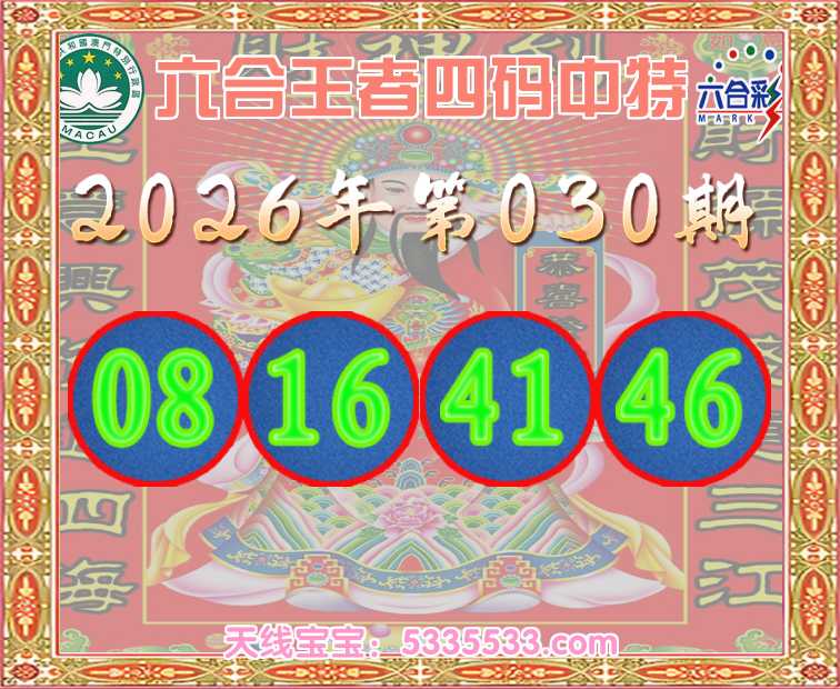 030期:《六合王者》 🥽四码中特🥽【08.16.41.46】开:41