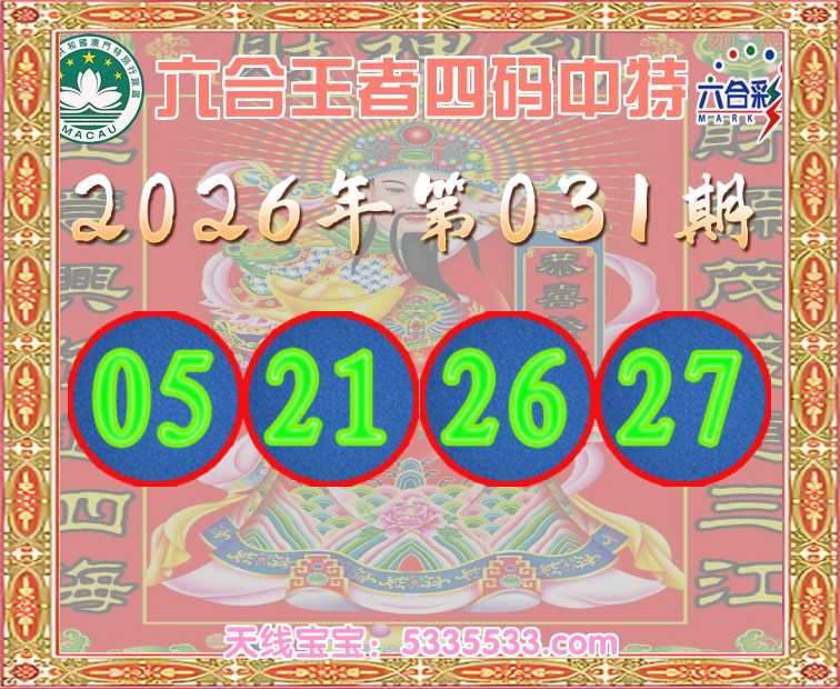 031期:《六合王者》 🥽四码中特🥽【05.21.26.27】开:26