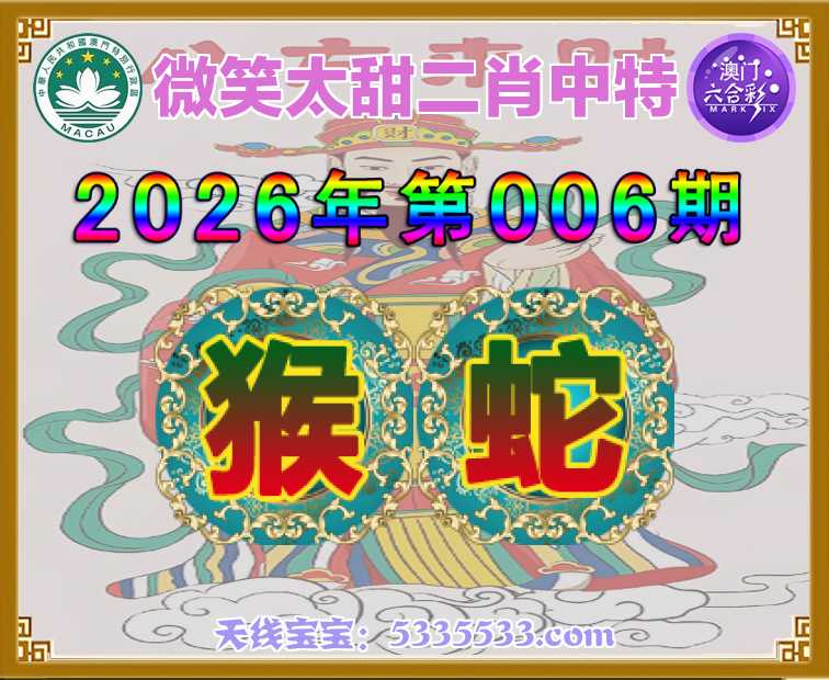006期:『微笑太甜』 🪢二肖中特🪢【猴.】开:蛇13